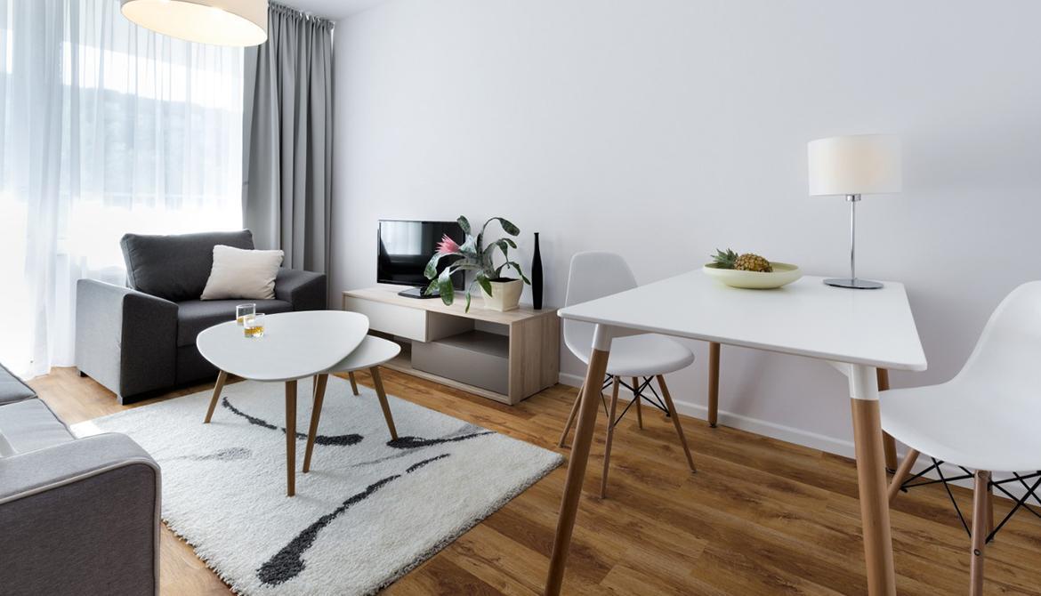 Ламинированная доска в минималистичном интерьере не требует сложного ухода