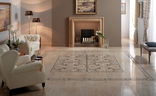 Итальянская керамическая плитка под мрамор уместна и в гостиной